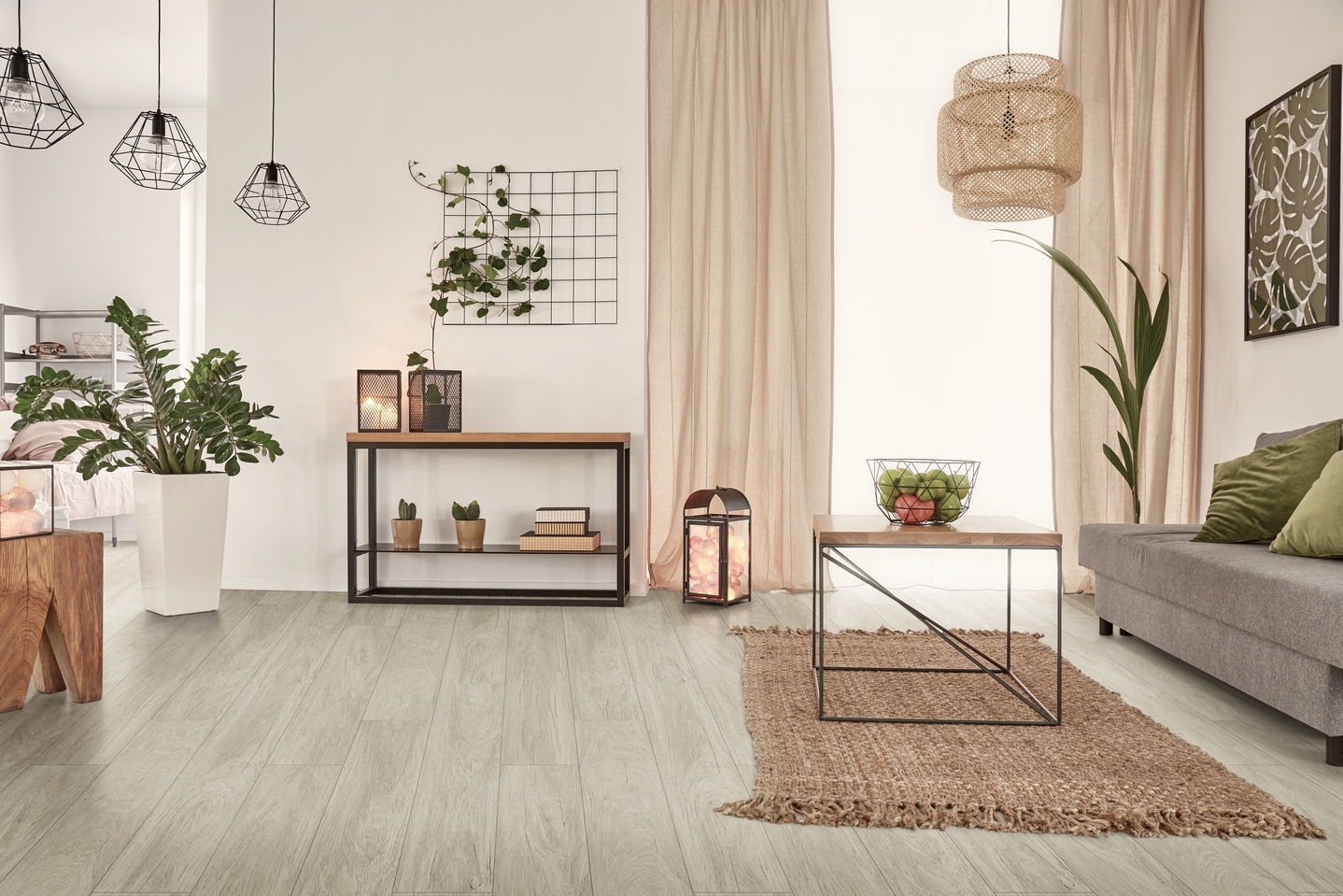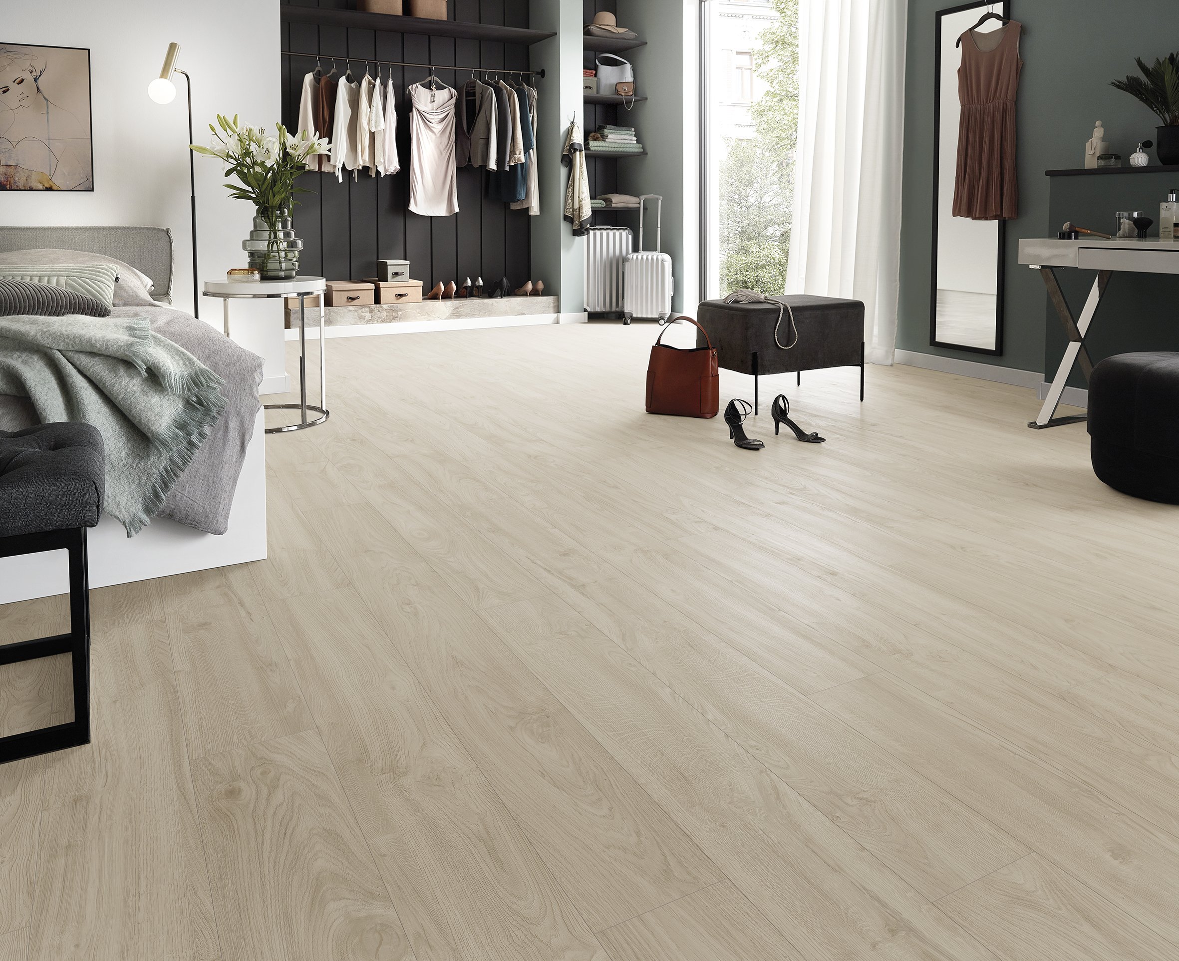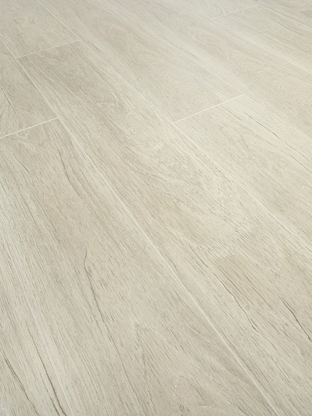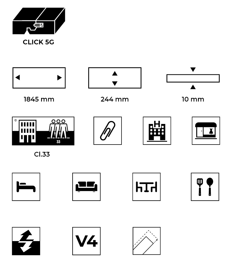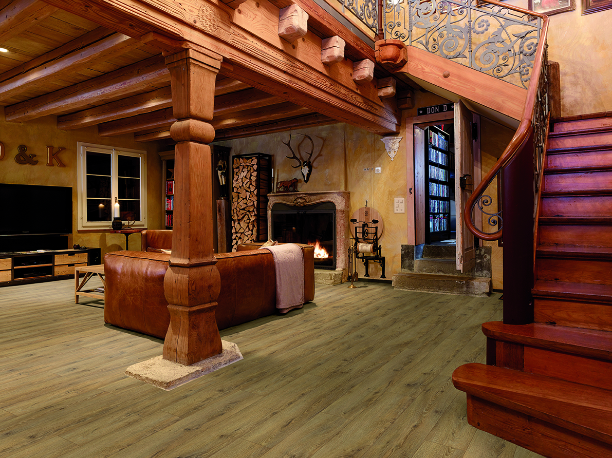 El suelo laminado SWISS MAJESTIC de 10 mm de grosor, formato ampliado, 1845 x 244 mm, con estructura sincrónica y sistema de clic 5G es adecuado para casi todos los espacios interiores con uso intensivo gracias a su clase de abrasión muy alta.